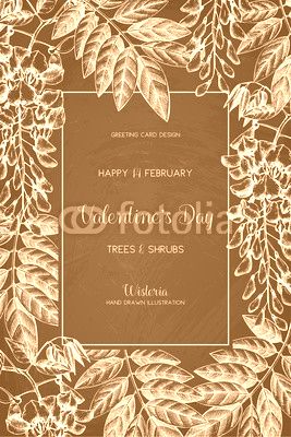Wisteria sketch background. Valentine's Day card or invitation design with hand drawn tree in flowers. Vintage floral illustration. Wedding decor on chalkboard.