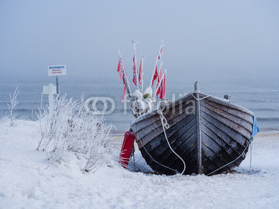 • Ein Fischerboot auf der Insel Usedom im Winter.